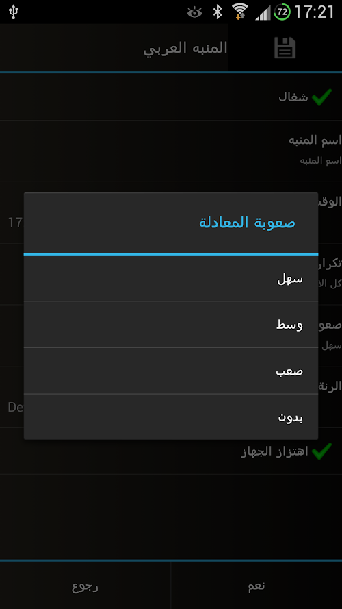 المعادله بثلاث مراحل: سهل ، وسط ، صعب.. او يمكنك تبطيل ميزة المعادله.