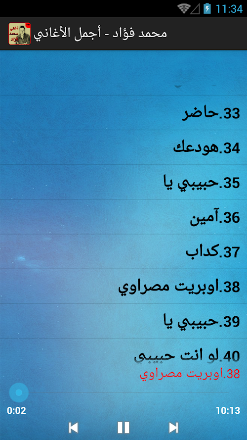 تطبيق ( محمد فؤاد - أجمل الأغاني ) يمكنك من الإستماع لجميع أغاني المغني المصري الشهير محمد فؤاد بصيغة mp3 وبجودة صوت عالية .