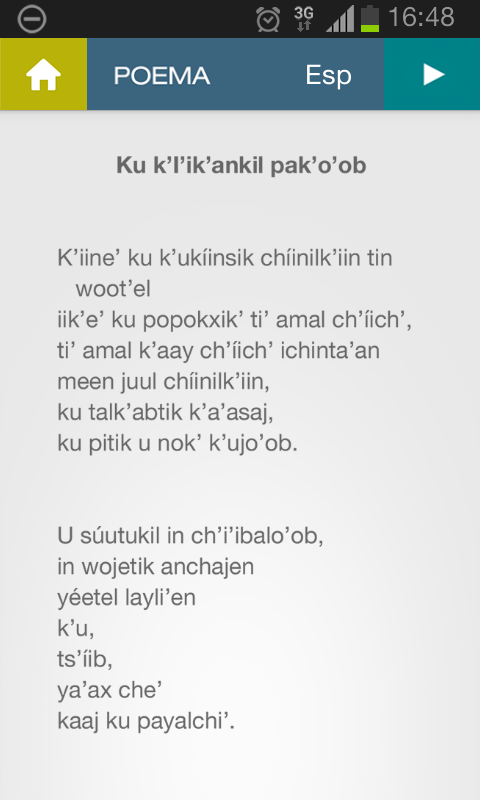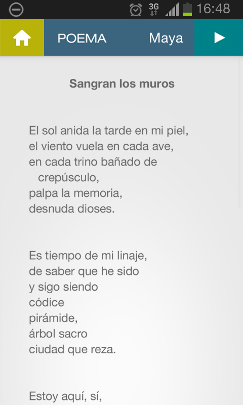 Contiene la lectura de una poesía maya contemporánea, en la voz de su autor, tanto en español como en lengua maya. También contiene datos adicionales para después de la visita como ligas a los 28 museos e instituciones, en Guatemala y México, que prestaron obra para la muestra.Application to access information before, during and after the visit to the exhibition "MAYA: Revealing endless time" temporary galleries in the National Palace of Mexico.