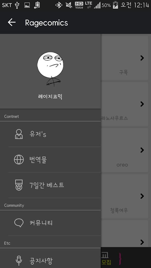 생활의 공감되는 내용을 만화로 표현한 레이지 코믹.