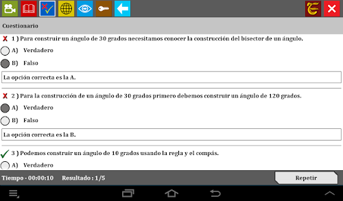 La aplicación le facilita la tarea gracias a sus imágenes y gráficos nítidos. Además de ofrecer información sobre la construcción de un bisector de ángulo para cualquier ángulo, la aplicación se centra en construir un ángulo de 30 grados bisecando un ángulo de 60 grados y establece la relación entre ambos.
