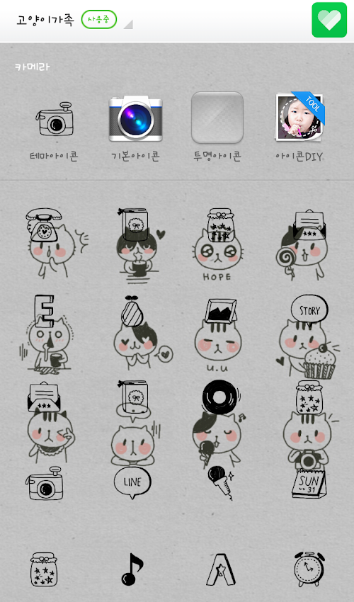 - 심플 테마. 시크 테마, 귀여운 테마, 캐릭터 테마, 개성만점 다양한 테마들과 끊임없는 신규 테마 업데이트