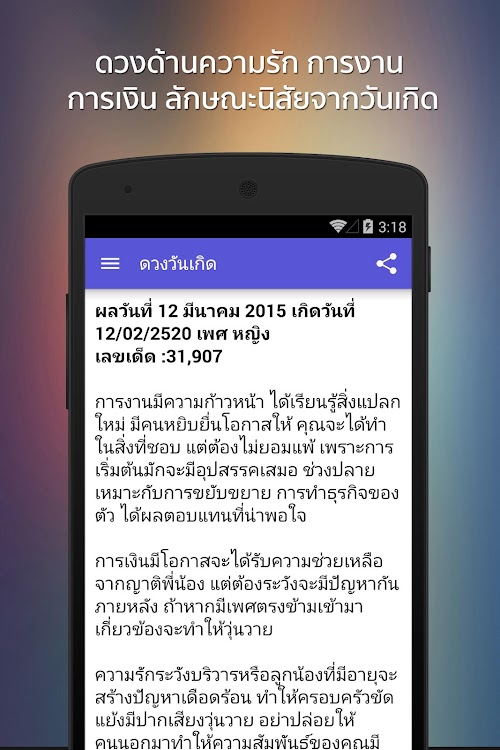This version of ดวงจากวันเกิด Android App comes with one universal variant which will work on all the Android devices.