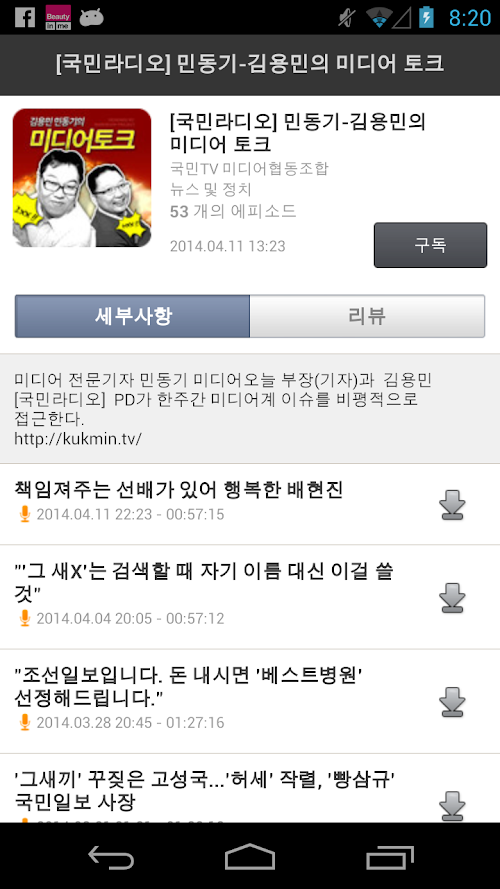 - 구독하기를 통해 업데이트된 팟케스트를 확인 할수 있습니다.