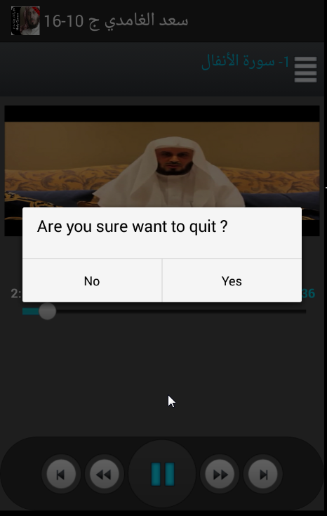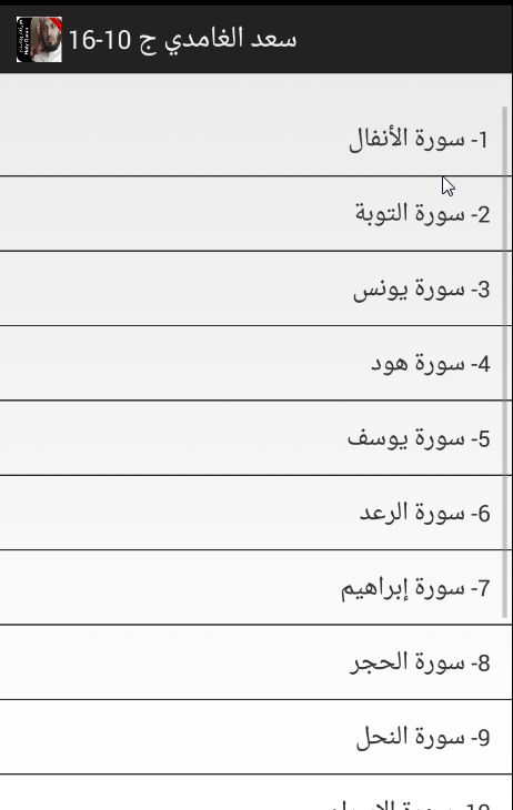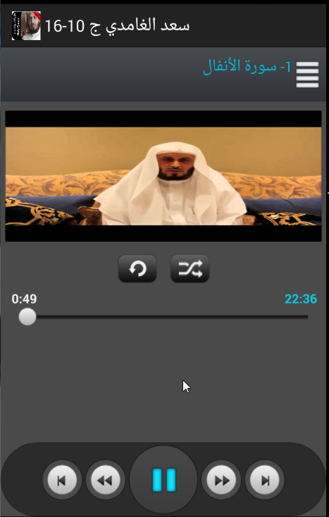 التنقل بين السور من داخل مشغل الوسائط الانتقال التلقائي للسورة التالية.