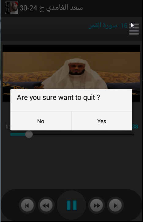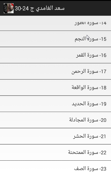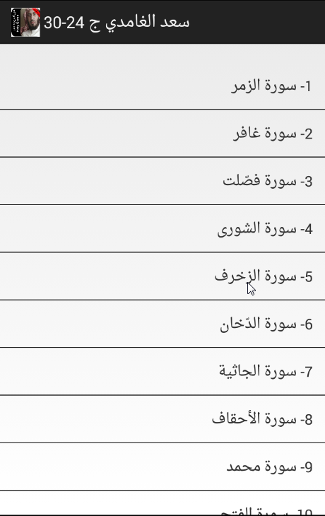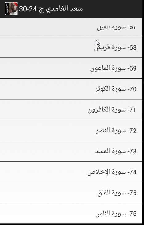 التنقل بين السور من داخل مشغل الوسائط الانتقال التلقائي للسورة التالية.
