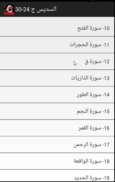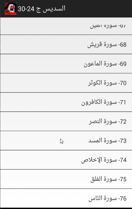 التنقل بين السور من داخل مشغل الوسائط الانتقال التلقائي للسورة التالية.