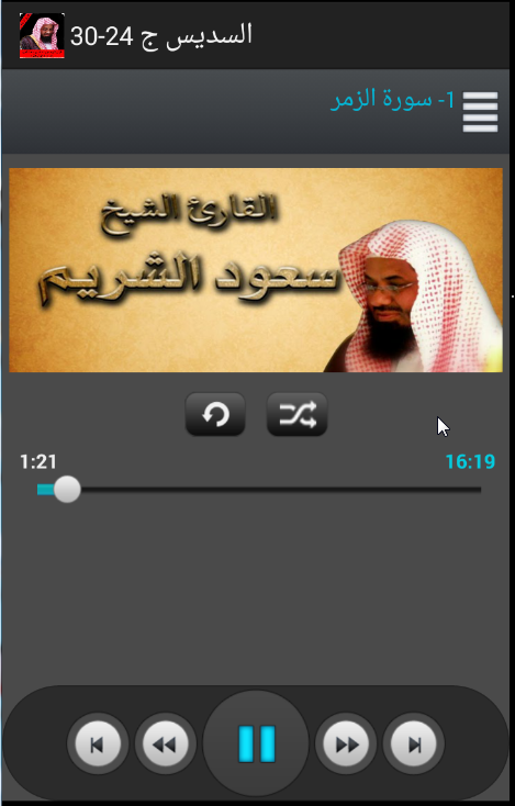 بالاضافة للتكرار والاستماع والتنقل العشوائي وميزات تصميمة وتقنية اخرى تحافظThis application is ongoing charity