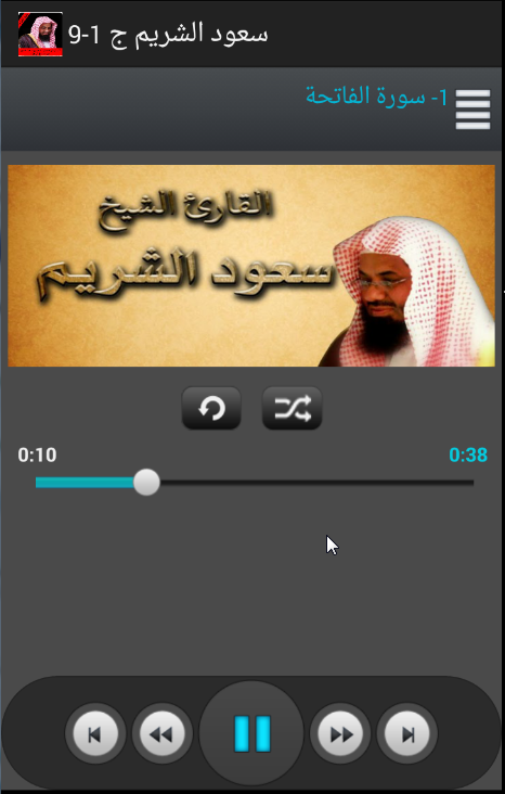 بالاضافة للتكرار والاستماع والتنقل العشوائي وميزات تصميمة وتقنية اخرى تحافظThis application is ongoing charity