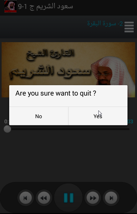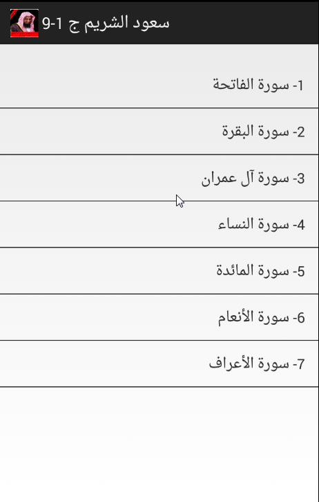 التنقل بين السور من داخل مشغل الوسائط الانتقال التلقائي للسورة التالية.