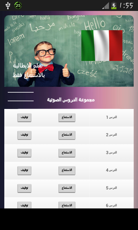 This version of تعلم الايطالية بالاستماع فقط Android App comes with one universal variant which will work on all the Android devices.