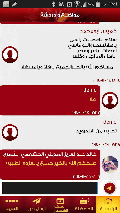 - مواضيع ودردشة داخلية مع مستخدمين التطبيق