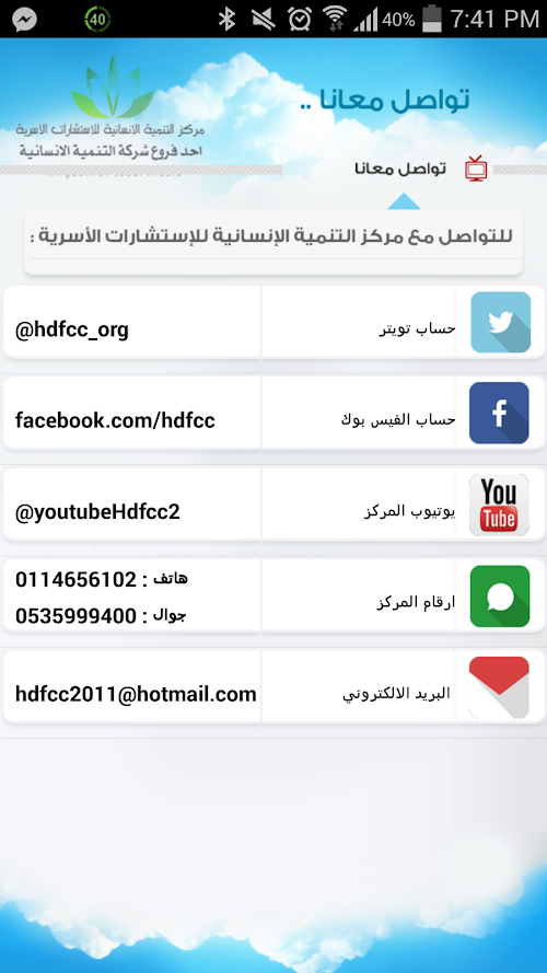 التواصل مع مركز التنمية الإنسانية للإستشارات الأسرية -