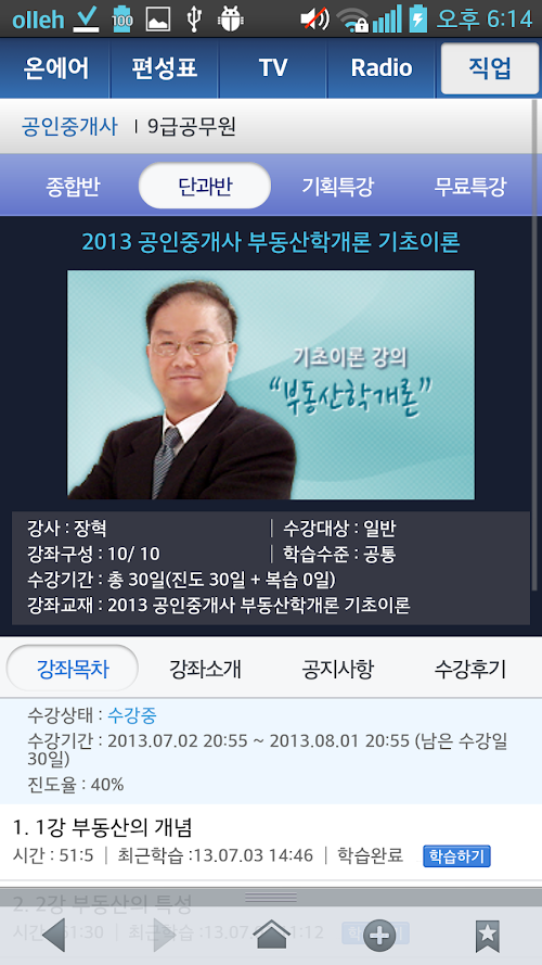 You can learn a vocational course I had to learn through the Luxury [EBS study Player] on the mobile (http://m.ebs.co.kr).
