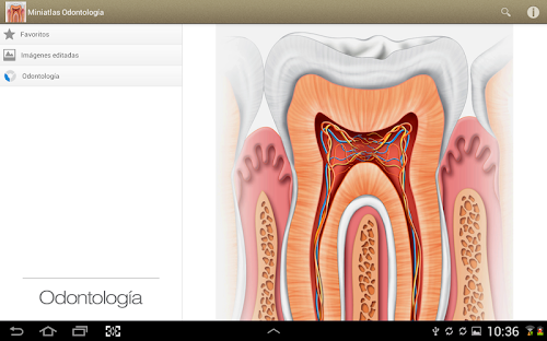 La aplicación Atlas de Odontología es una herramienta de bolsillo para los profesionales del cuidado oral. Siempre a mano en su teléfono o tableta, usted dispondrá de una completa colección de imágenes médicas de gran calidad visual que le resultarán útiles tanto en su práctica diaria como para su uso en presentaciones con otros profesionales. Además la aplicación contiene la opción de editar y/o enviar las imágenes por e-mail.