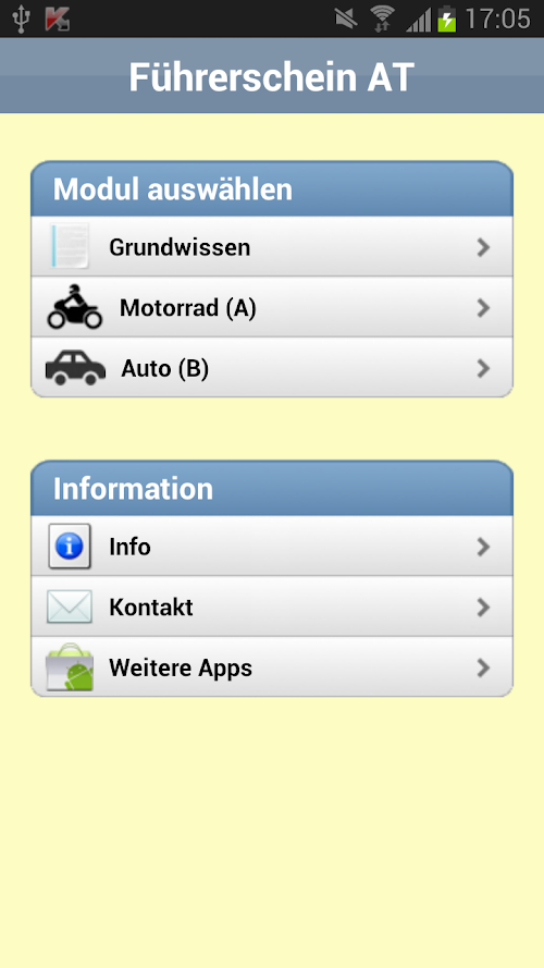 Wir würden uns über eine positive Bewertung unserer App auf dem Google Android Market sehr freuen. Sofern Du Fragen oder Verbesserungsvorschläge hast, kannst Du uns jederzeit via [email protected] kontaktieren. With the driver's license in 2016 app you can easily prepare optimally for the driving test for the modules knowledge, A or B. The questionnaire contains the official of the Ministry and can be learned by means of various learning methods. Thus, you can always track your learning progress.