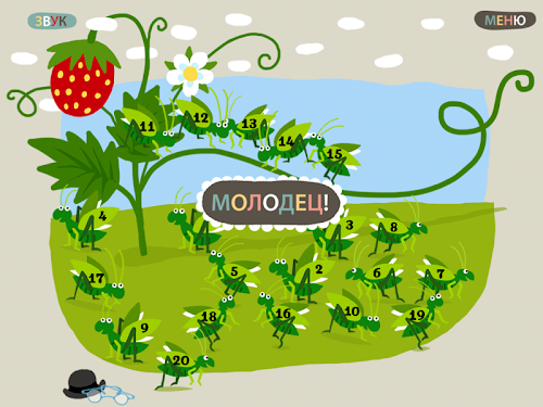 During training, the child will be accompanied by a cute character - Science Club. And assume it will be sheep, penguins and grasshoppers. And it definitely will not be bored. So, it would be easy to learn and fun.