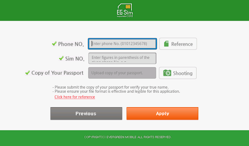 EG USIM 신청(Tab)EG USIM Application (Tab)