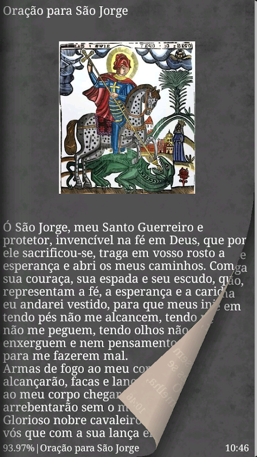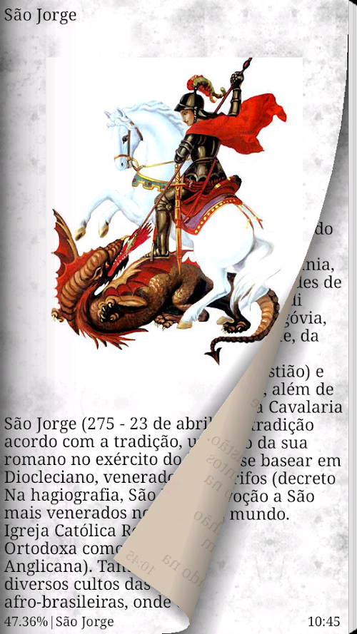 São Jorge foi um valente soldado romano, no exército do imperador Diocleciano, no século IV. Imortalizado no conto em que mata o dragão, venceu contra santanás terríveis batalhas. Atualmente é venerado em todo o mundo, como mártir na Igreja católica e em diversos cultos das religiões afro-brasileira. É o santo padroeiro da Inglaterra, Portugal, Geórgia, Catalunha, Lituânia, Moscou e extra-oficialmente da Cidade do Rio de Janeiro.