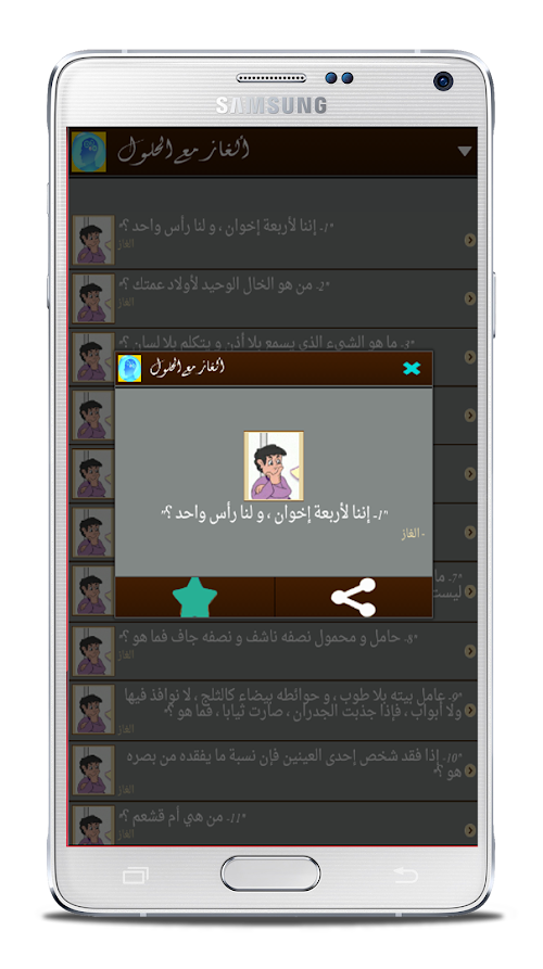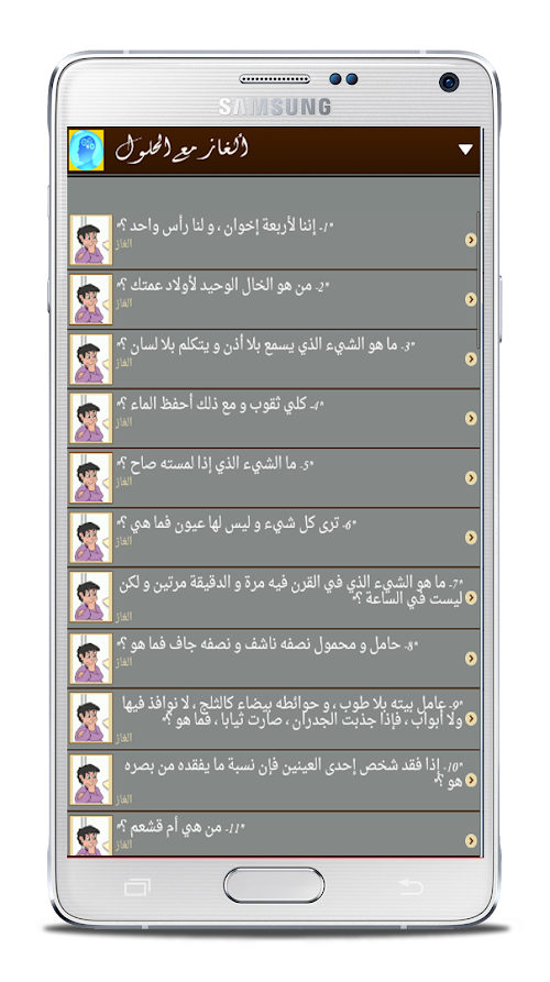 تطبيق الغاز عبارة عن مجموعة من الغاز المختارة بطريقة يدوية من مختلف الاصناف .مابين الغاز مضحكة و الغاز رمضان وشعرية و الغاز الذكاء ورقمية . الغاز العربية الموجودة فى التطبيق هي عصارة مجموعة من المواقع المتخصصة .اخترنا لكم أفضل و أروع الغاز الذكية لتنمي الرصيد المعرفي و الدهني لديكم.