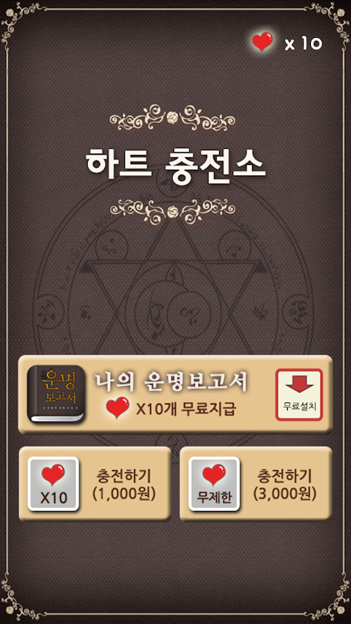 4.하트를 충전한다.(운명보고서를 설치하면 하트10개를 무료 지급)