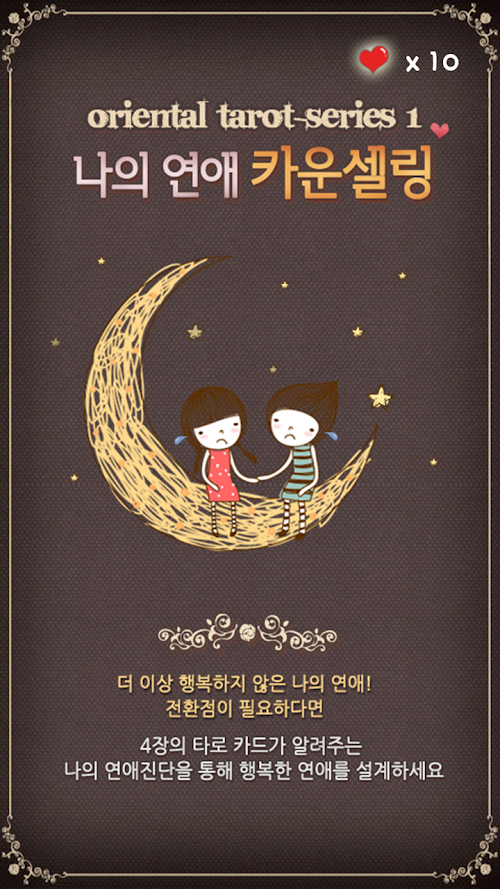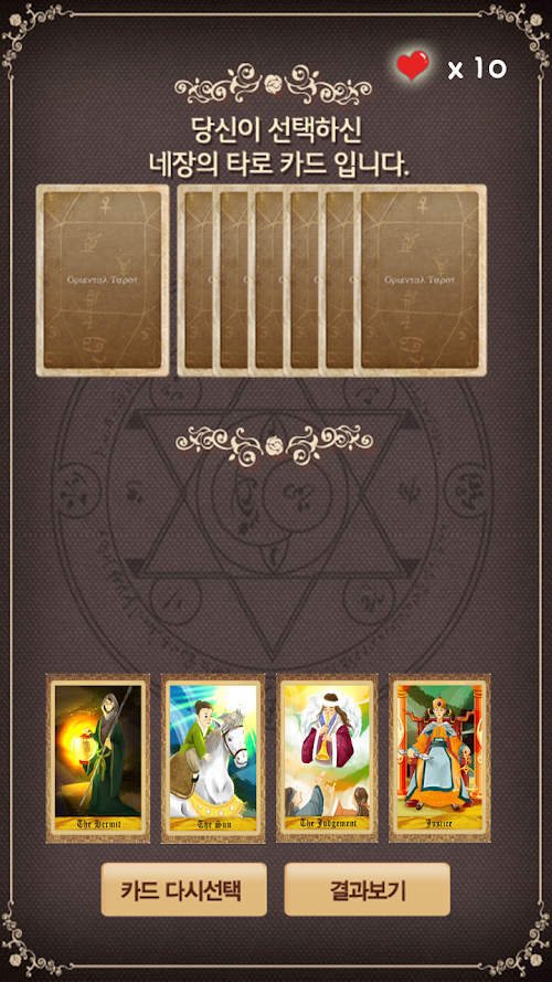 타로카드점을 한번 볼 때마다 하트 15개가 사용 됩니다.