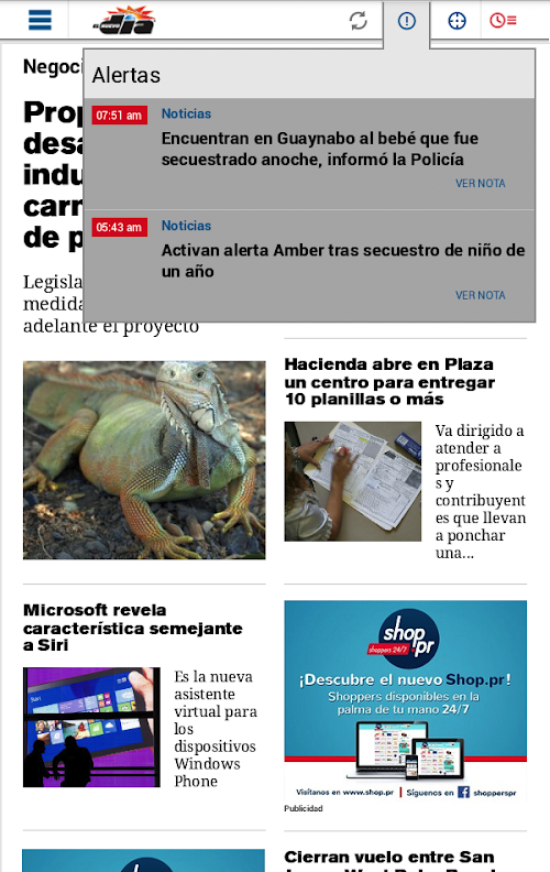 The El Nuevo Día Android Tablet App is a free application that gives you access to the most popular sections like news, movies, lottery, and more!