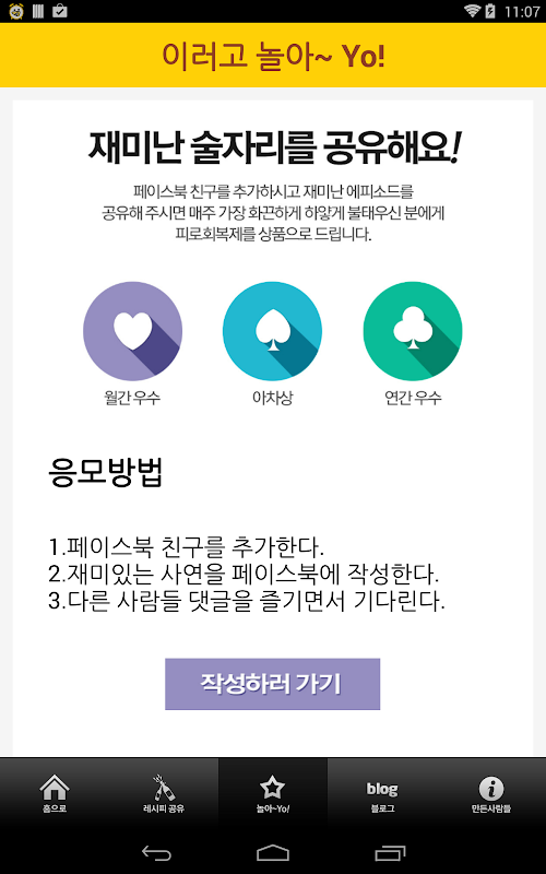 술래잡기에서는 술자리단체게임 혹은 재미있는 커플술게임을 소개해드립니다 :D