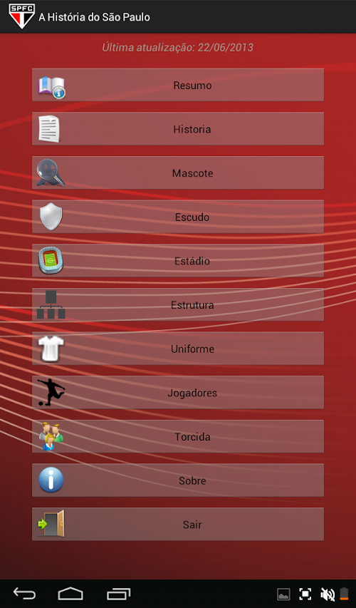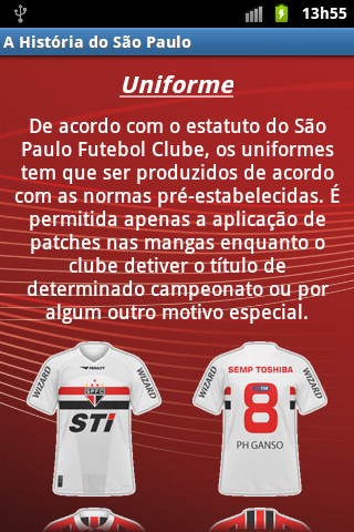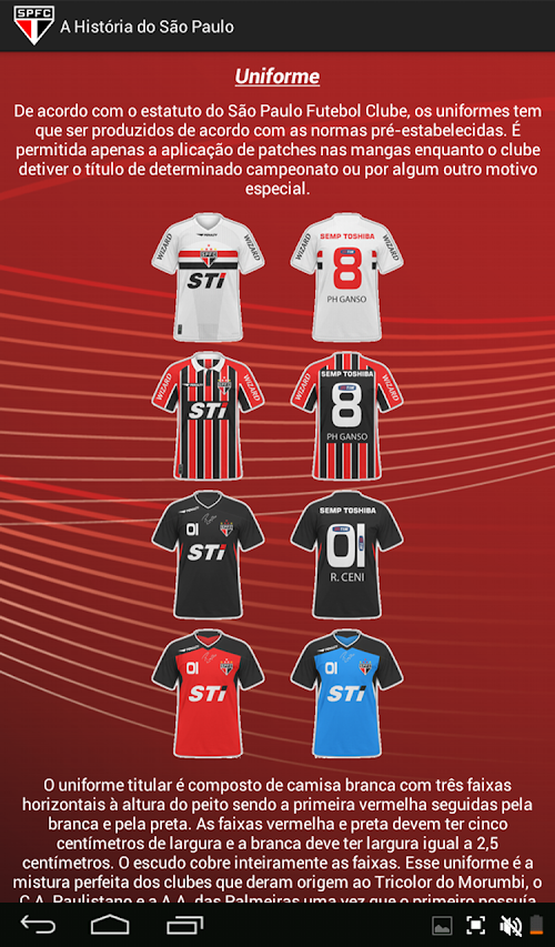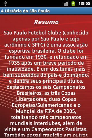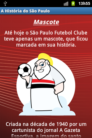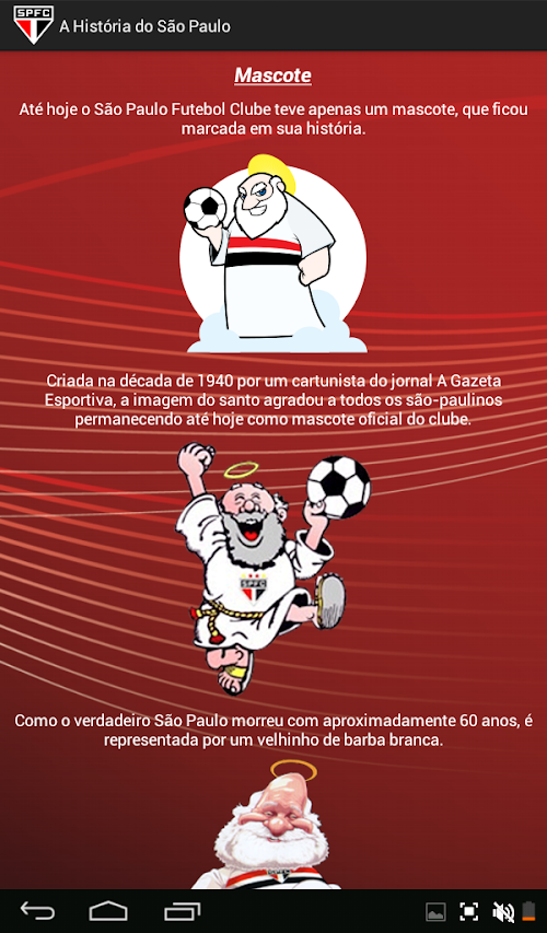 This application describes a little summary of this team so beloved, telling a bit of its history, explaining the emergence of the mascot, the explanation of his shell a bit and describes their stadium, Cicero Pompeu de Toledo, also called Estádio do Morumbi .