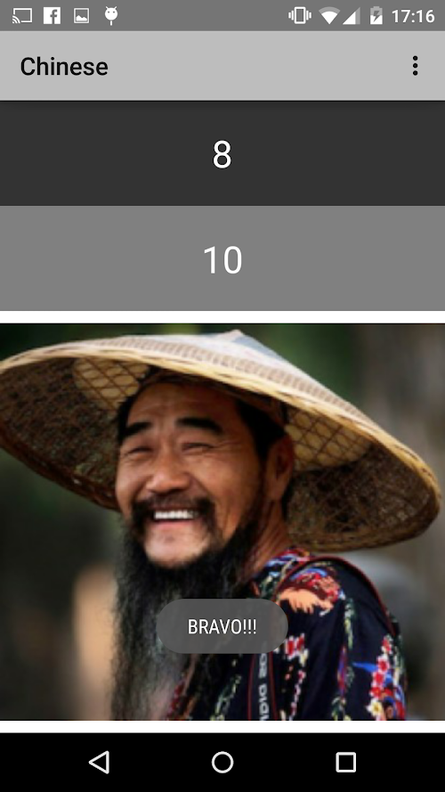 Testez-vous sur 10 caractères sélectionnés au hasard.This free application with no advertising allows you to assess yourself on basic Chinese characters.