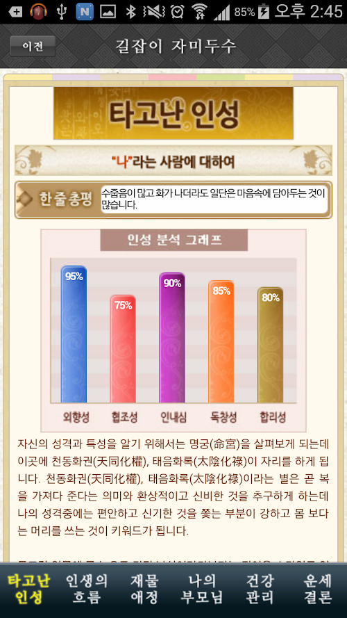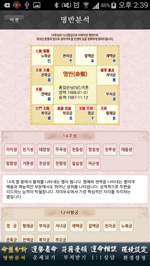 명궁에 위치한 별을 통해 타고난 인성을 알아볼 수 있습니다.