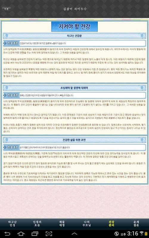 2.오늘의운세,주간운세 무료이용