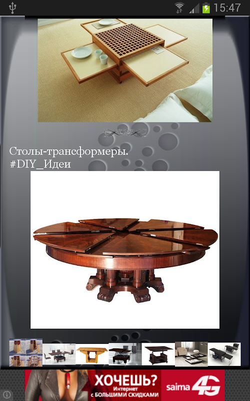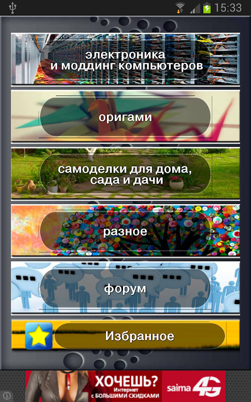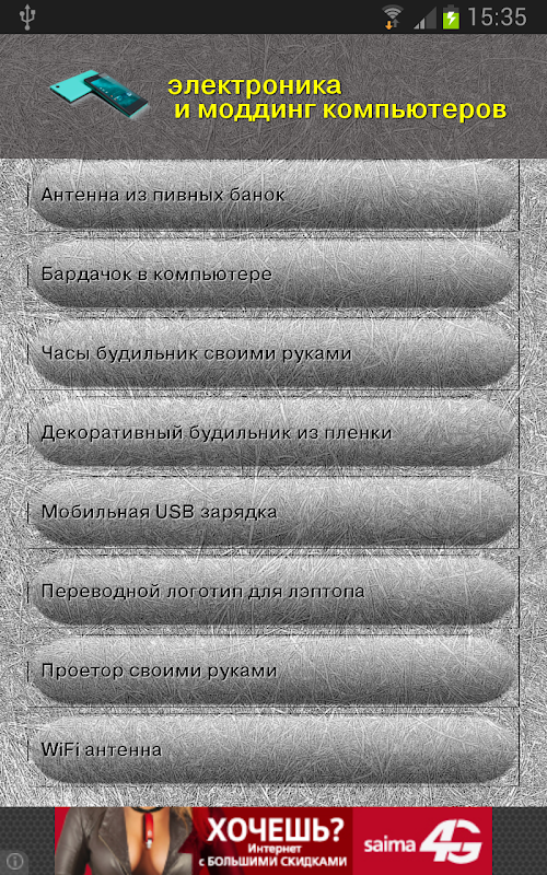Для любителей мастерить и делать своими руками, мир интересных самоделок. Электроника, оригами, самоделки для дома и дачи, и многое другое. Пошаговые описания с детальными фотографиями помогут быстро понять как сделать конкретную самоделку. В приложении присутствует функция увеличения фотографий, что делает её еще более удобной в использовании. Также вы сможете зайти на онлайн форум, где очень много информации, которая часто обновляется. Научись делать простые и интересные вещи своими руками.For tinkerers and do with their hands, the world of interesting homemade. Electronics, origami, homemade for home and garden, and more. Step by step description with detailed photos to help understand how to make home-made concrete. The application has a function of enlarging photos, which makes it even more convenient to use. You can also go to the online forum, where a lot of information that is frequently updated. Learn to make simple and interesting things with their hands.
