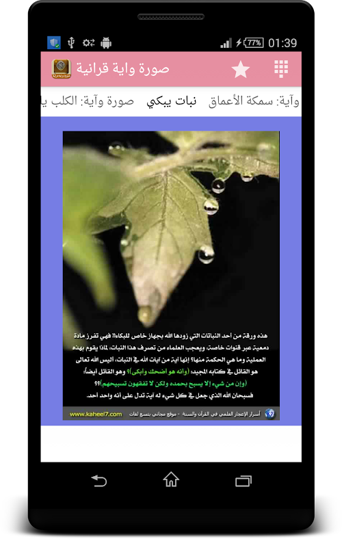 في هدا اتطبيق تجدون اكثر من 400 صورة مكتوب عليها اية من القران الكريم تدل على مدى عظمة الله سبحانه اتمنى ان تنال اعجابكم