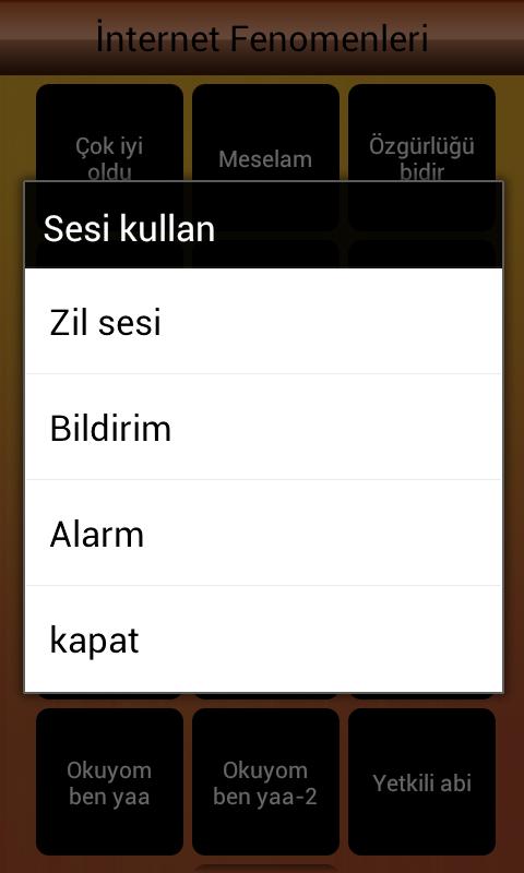 Not : İçerik sürekli güncel tutulmaktadır. Duymak istediğiniz fenomen seslerini bize iletebilirsiniz.They said it was very interesting phenomena on the Internet, a not-so-funny, sometimes you say in response to our friends, entertained conversations into our daily lives as a template in your pocket now. If you want to mix different sounds you can, if you like ringtone, notification sound, or use it as an alarm sound.