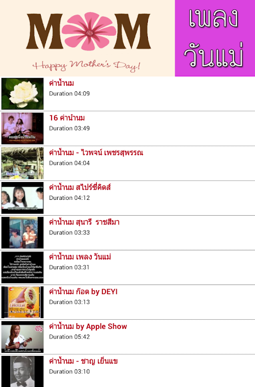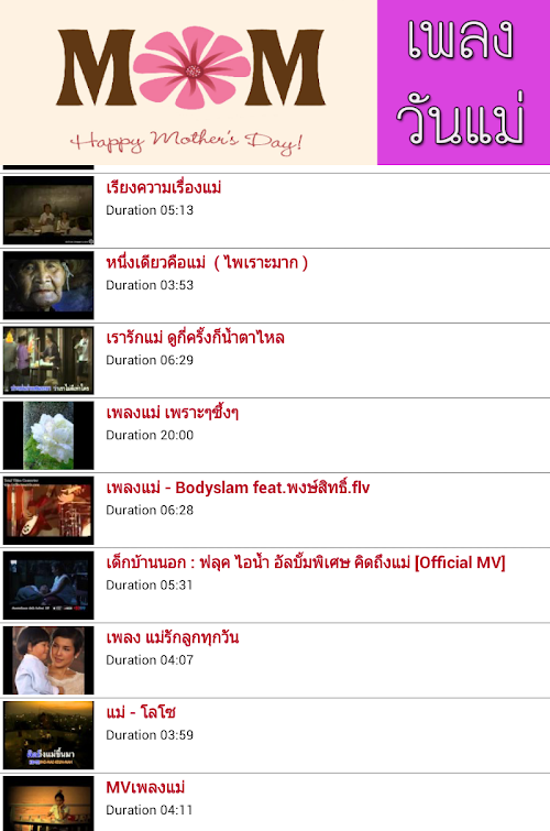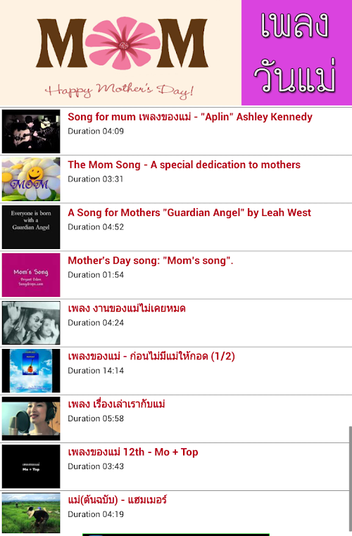 แอพเพลงวันแม่ (Mother’s day Song) เป็นแอพที่รวบรวมเพลงวันแม่ที่ฮิตติดชาร์ต ทุกยุคทุกสมัย