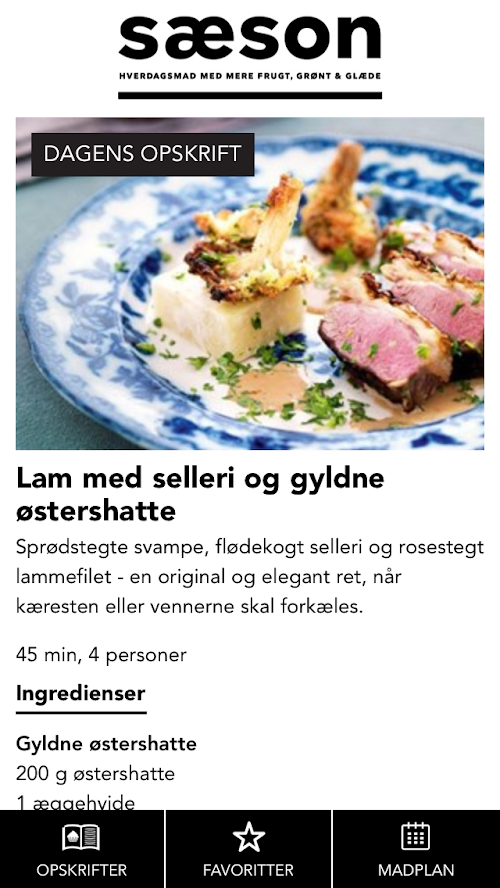 Sæson er til for at inspirere dig og din familie til en hverdag med mere frugt grønt og glæde. Og med vores nye app, er inspirationen aldrig længere væk end mobilen eller jeres tablet. Så har du altid over 600 opskrifter på grøn og skøn hverdagsmad lige ved hånden. Season is here to inspire you and your family to a life with more fruits and vegetables joy. And with our new app, the inspiration never farther away than your phone or your tablet. So you always have over 600 recipes for green and beautiful style cooking at your fingertips.