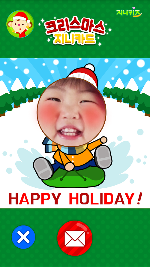 엄마와 아이가 예쁜 크리스마스 배경으로 사진을 찍고 공유할 수 있는 사진 카드 앱!