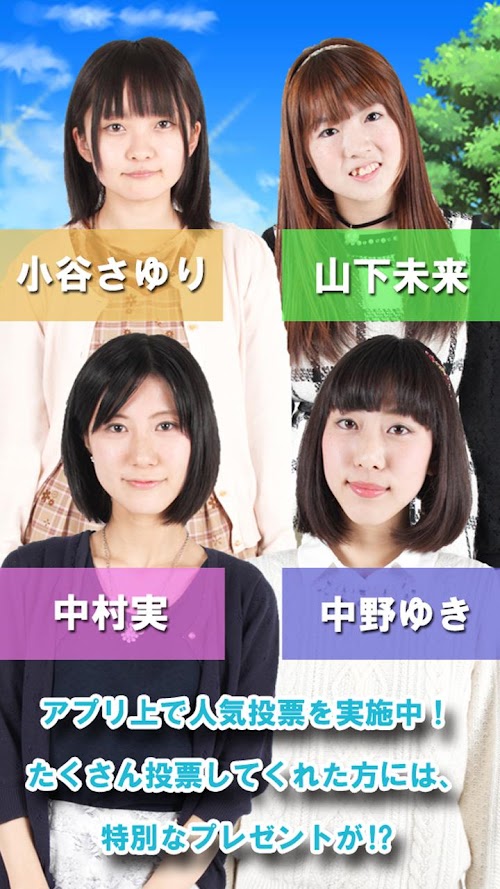 ◇◇2015年3月31日までアプリ上でメンバーの人気投票を実施中!!投票を通してお気に入りのメンバーを応援しよう!◇◇