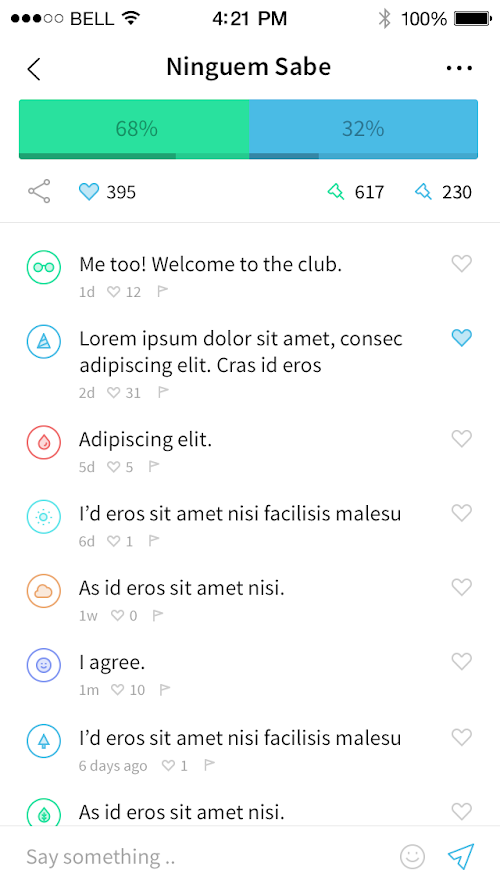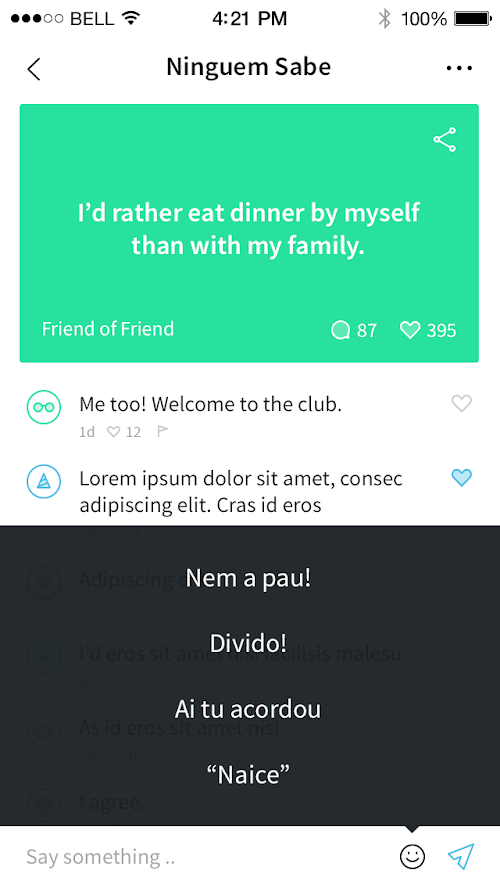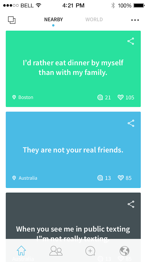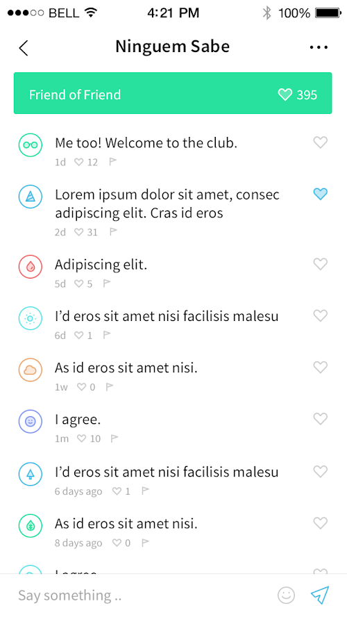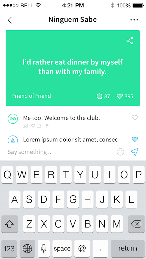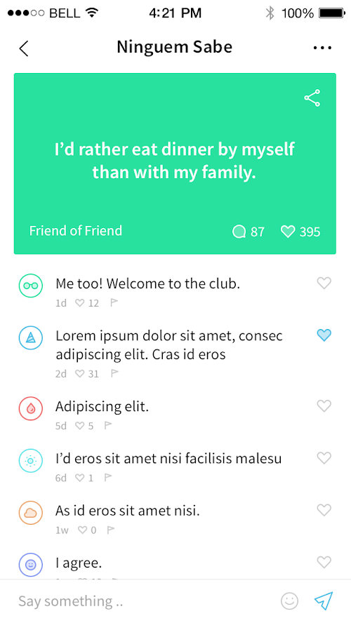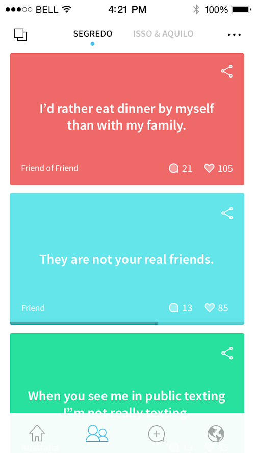 [+] Quando um amigo gostar do seu segredo, ele se espalha entre os amigos dele. Os segredos mais interessantes podem viajar por todo o mundo.