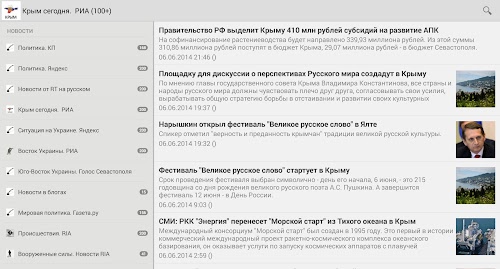Ситуация на востоке Украины. Обстановка в Крыму. Происшествия. Общие политические новости и конечно, новости касательно вооруженных сил. Все в одном приложении. Обновления ежечасно (можно настроить). Затем возможно читать в офлайне ранее подгруженные новости. Удобная навигация и все настройки. Все ненужное можно отключить.