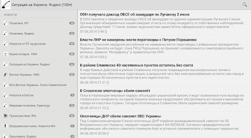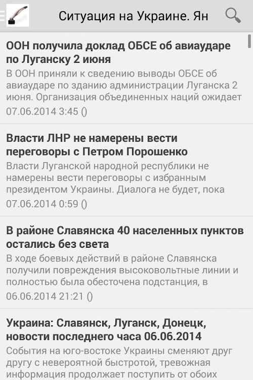 The situation in the east of Ukraine. Situation in Crimea. Incidents. General political news and of course, the news about the armed forces. All in one application. Updates every hour (can be customized). Then possible to read offline the uploaded earlier news. Easy navigation and all the settings. You can disable all unnecessary.