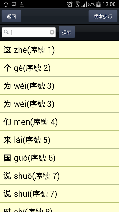 * 强大的搜索功能,包含按拼音,字,序号来搜索。