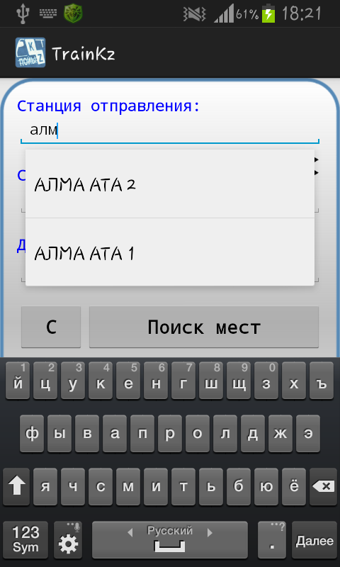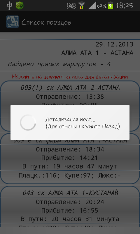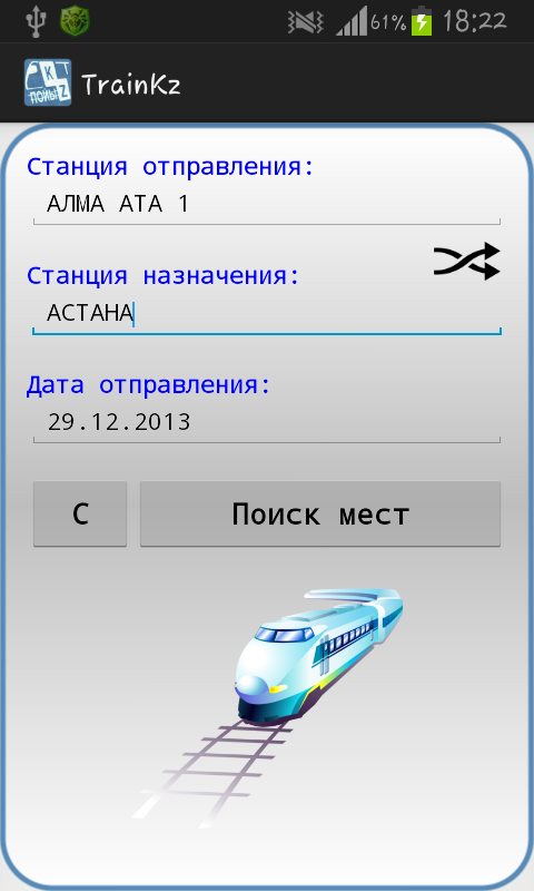 This app is for you if you need to find out whether there is a train ticket to "such and such a number," "out on the" train to "tudova", thus having the only smartphone that is connected to the Internet (via wi-fi, gprs , 3g, and the like).