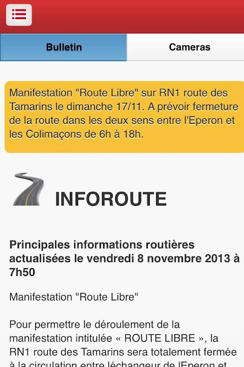- Services: Follow Highway 974 in real time. Traffic information, coastal road and work accidents are reported immediately. Also watch the webcams of the island in real time (Gillot, Great Boat, Bus Station Saint-Denis, etc.) in partnership with the Department of Roads Meeting and stay informed by our pushs (alerts).