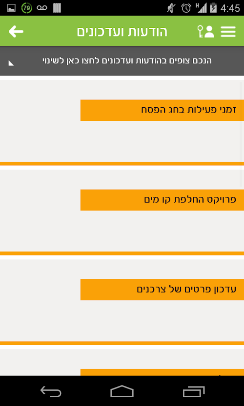 - קבלת הודעות מתאגיד המים שלכם, בתחומים המעניינים אתכם