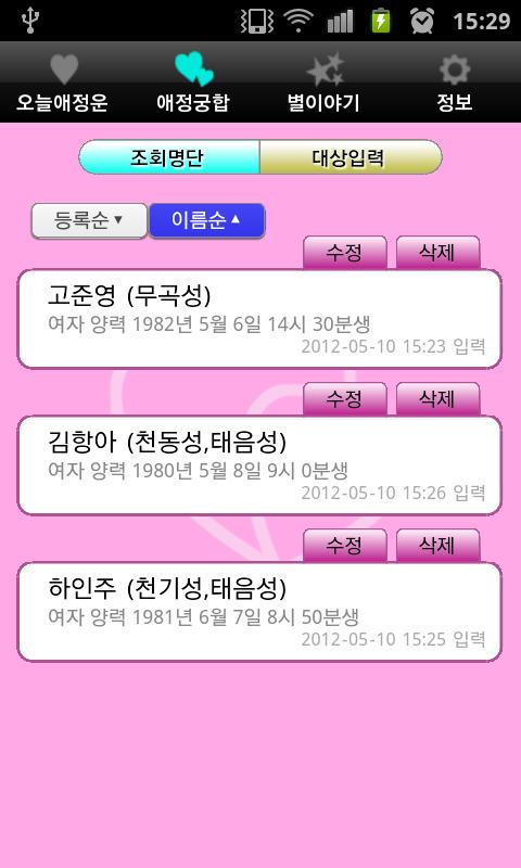 ♥♡ 애정궁합과 오늘의 애정운 위젯을 제공합니다. ♥♡