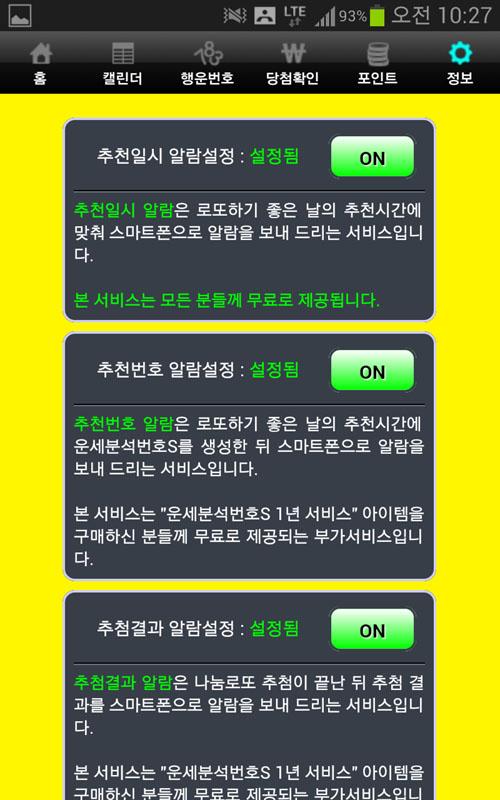(추천일시 알람은 모든 사용자에게 제공되며, 추천번호 알람/추첨결과 알람은 운세분석번호S 1년 서비스 이용자에만 제공됩니다.)