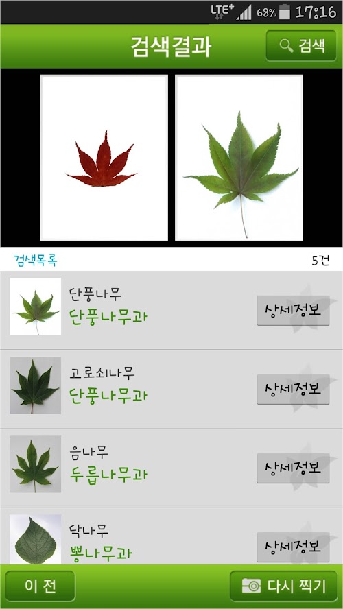 - 카메라로 촬영한 나뭇잎으로 식물의 이름을 찾아 볼 수 있습니다.
