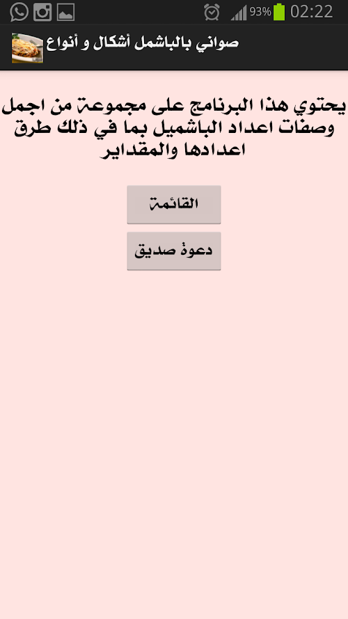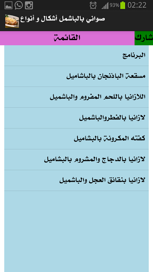 يحتوي هذا البرنامج على مجموعة من اجمل وصفات اعداد الباشميل بما في ذلك طرق اعدادها والمقداير.This program contains a set of the most beautiful and recipes preparation Albashimil, including the ways preparing and Almekdaar.